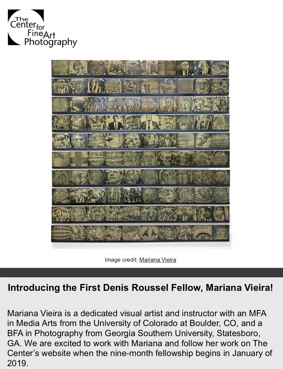 I am proud to announce that I received the Denis Roussel Fellowship through the Center for Fine Art Photography in Fort Collins, Colorado.